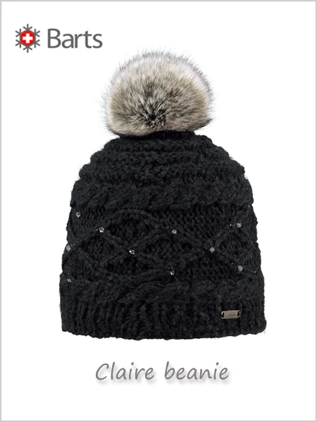 The Claire beanie by Barts is knitted by hand and features tiny rhinestones and a faux fur pom. It has a soft, fleece lining to keep your forehead from getting itchy.