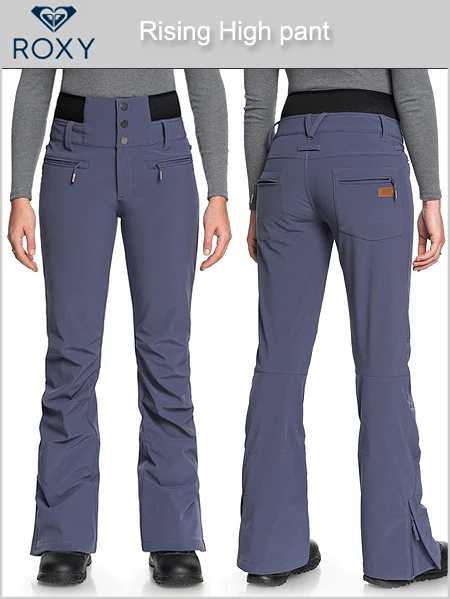 Rising High pant from Roxy for women skiers and snowboarders. Rise to the challenge with these 15K high-waisted pants. A high-performance, high-stretch shell makes the fashion-forward skinny fit as comfortable as it is badass, so you can get after it on the hill, and look great while you’re doing it.