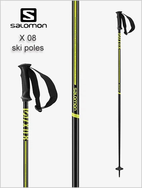 The X 08 ski poles for men from Salomon. X 08 offers performance without compromise, including a quality aluminium shaft, bi-material grip and comfortable, wide strap for skiing fast all day.